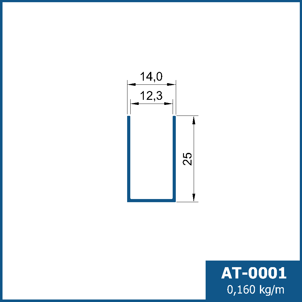 Perfil PU 14X25mm, para batente da folha de correr de grande porte e perímetro de quadros fixos.