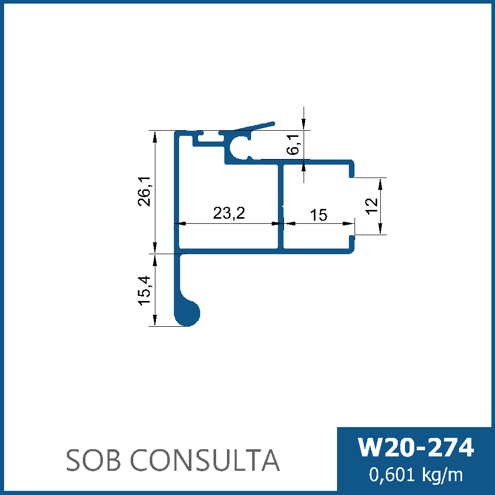 Montante mão amigo, sem baguete, com aba (para efeito puxador) e dupla vedação de engate. Para janelas e portas de pequeno a médio porte.