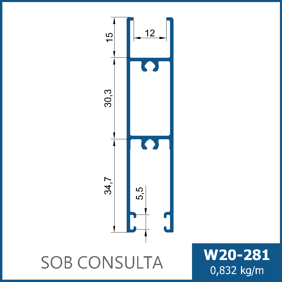 Travessa reforçada sem baguete, para largura inferior da folha de correr.