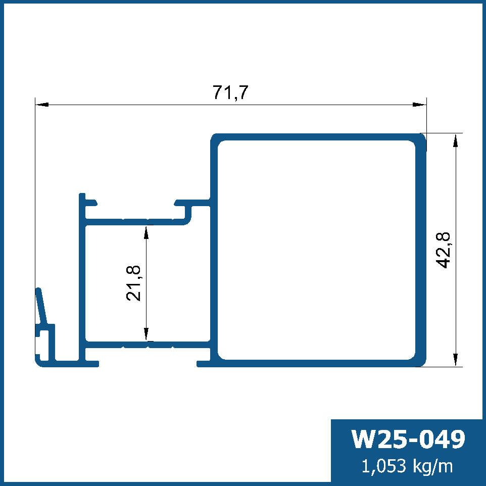 Montante mão amigo externo com reforço tubular, para portas de correr de médio a grande porte.