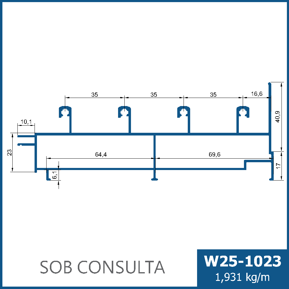 TRILHO N PLANOS – BASE DA ESQUADRIA PARA FOLHAS DE CORRER.