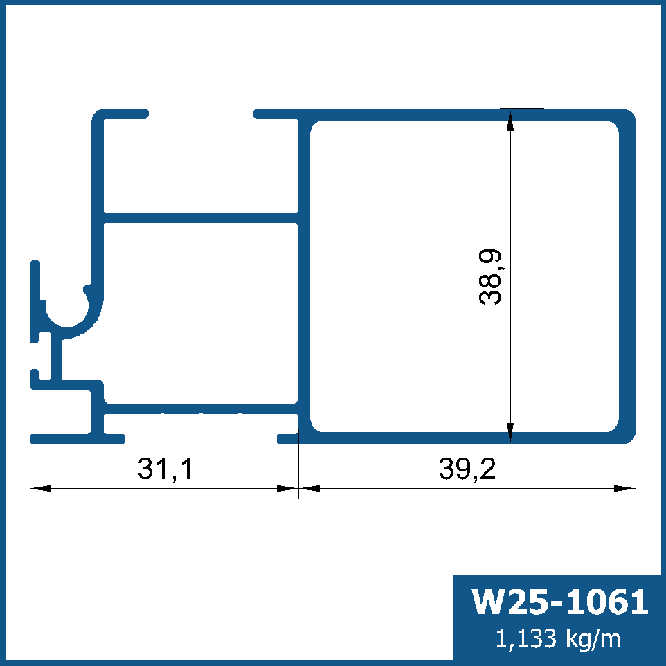 Montante mão amigo, sem baguete, com reforço tubular e dupla vedação de engate. Para portas de médio a grande porte.
