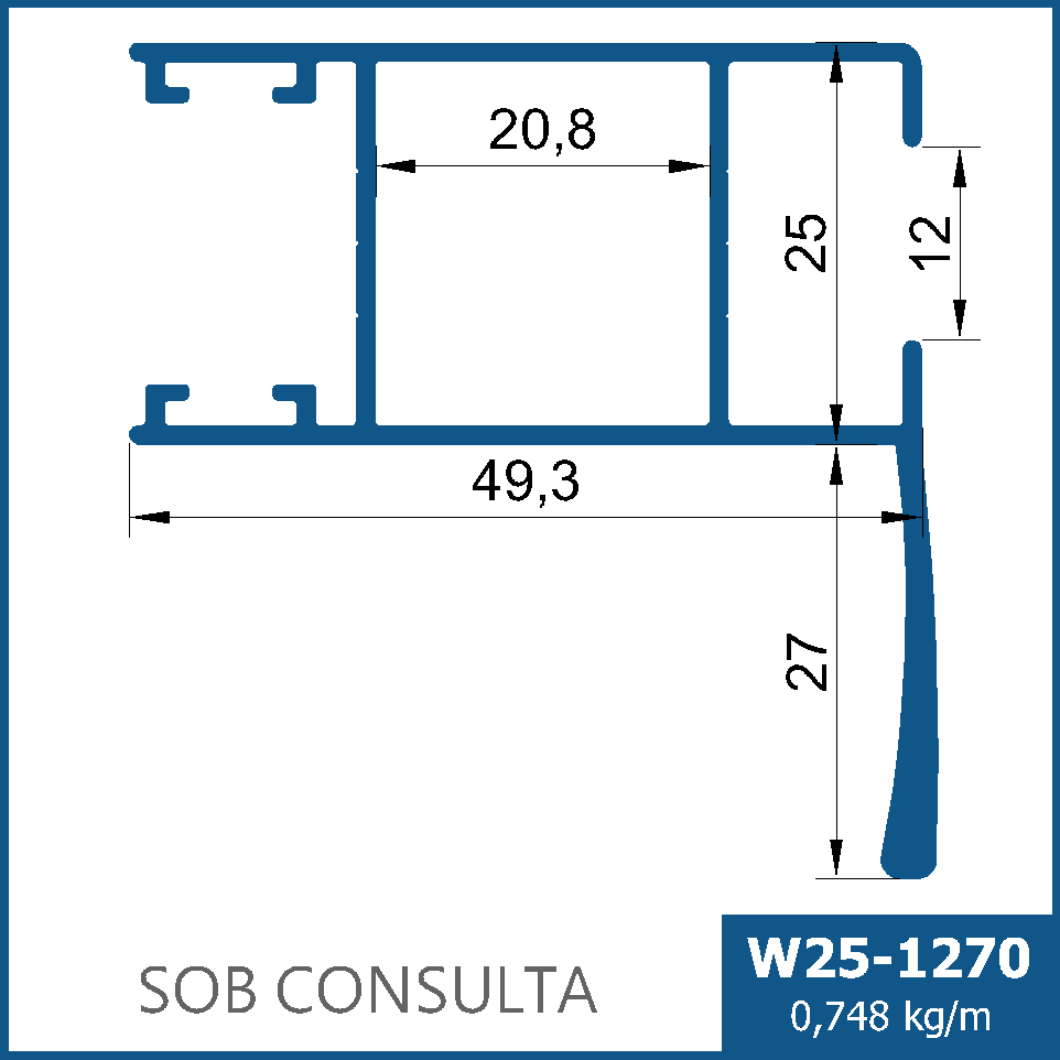 Montante encaixilhado lateral e/ou central, com aba para efeito de puxador.