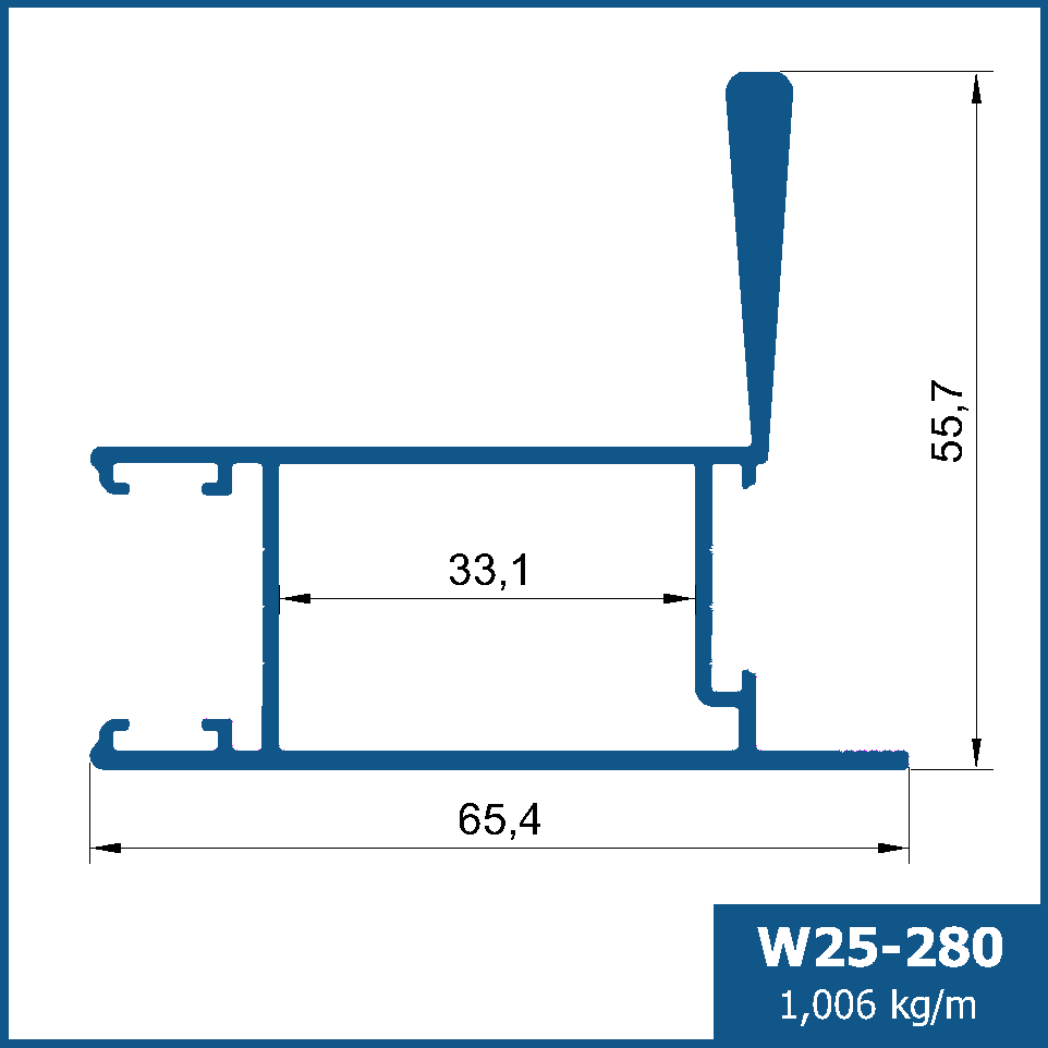 Montante lateral e/ou central, com aba interna para efeito puxador. Para portas de correr que necessitam de fechadura.