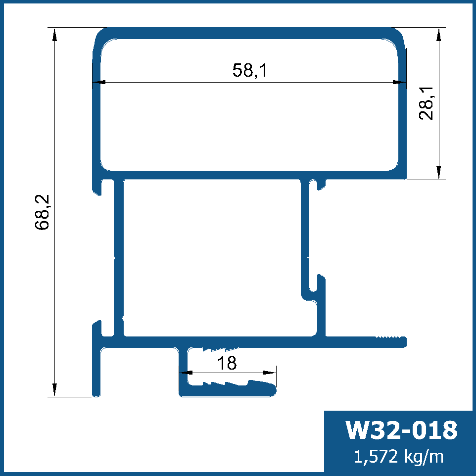 Montante mão amigo interno com reforço tubular, para portas de correr de médio a grande porte.