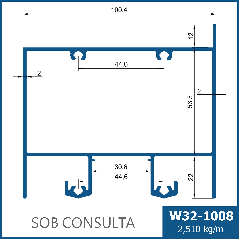 Marco guia dois planos intermediário para esquadria com folhas de correr e bandeira.