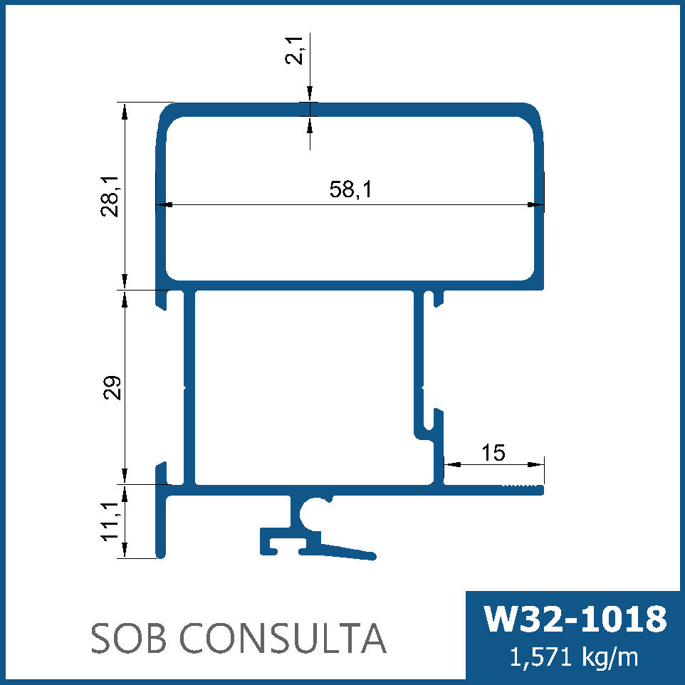 Montante mão amigo interno com reforço tubular e dupla vedação de engate, para portas de correr de médio a grande porte.