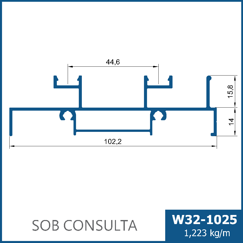 Trilho dois planos para portas de correr de médio a grande porte. Recebe click W32-111 de acabamento.