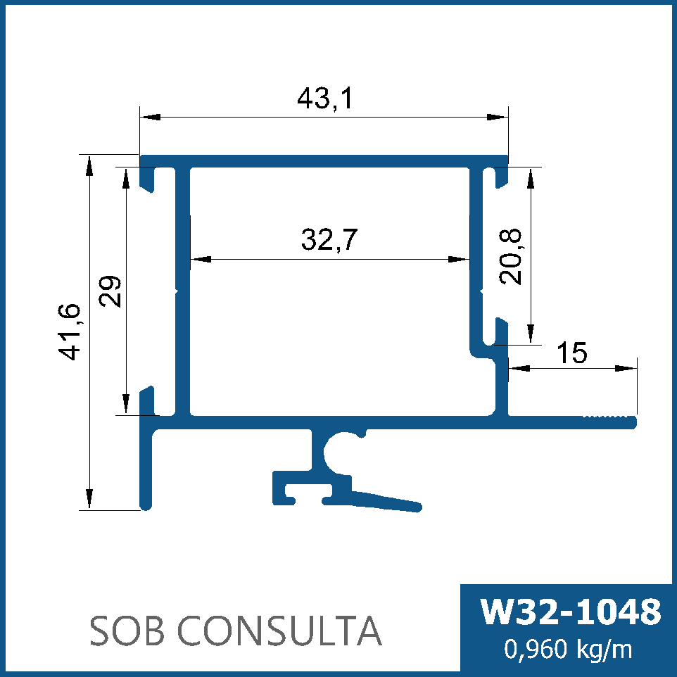 Montante mão amigo interno, com dupla vedação de engate, para janelas de correr.
