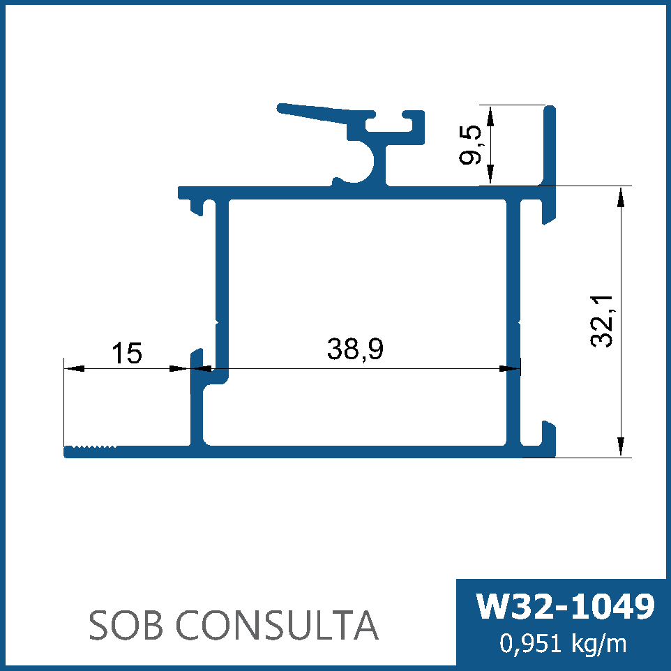Montante mão amigo externo, com dupla vedação de engate, para janelas de correr.