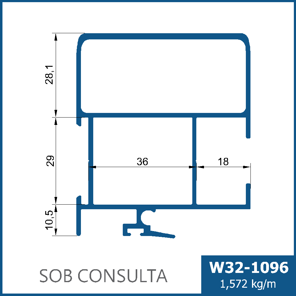 Montante mão amigo, sem baguete, com reforço tubular menor e dupla vedação de engate. Para portas de médio a grande porte.