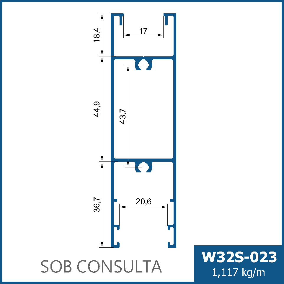 Travessa reforçada para travamento nas larguras inferiores ou superiores em folha de correr.