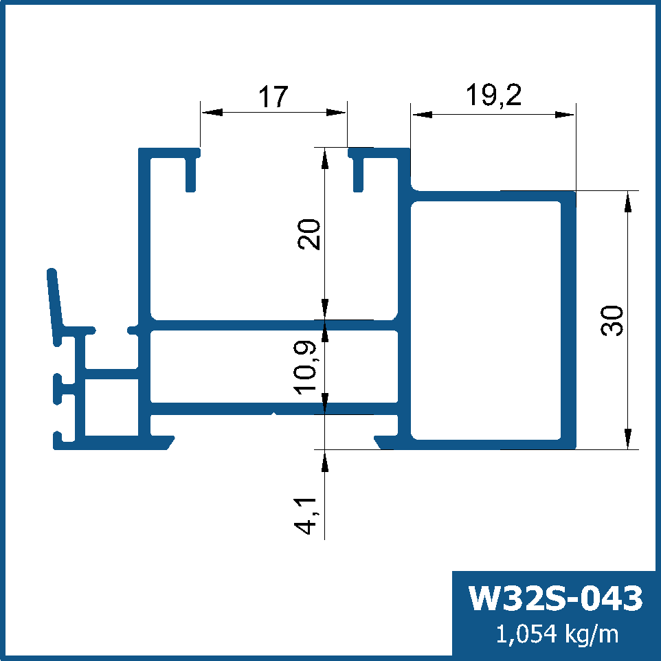 Montante mão amigo slim, com tripla vedação e reforço tubular mini de 19,2X30mm.