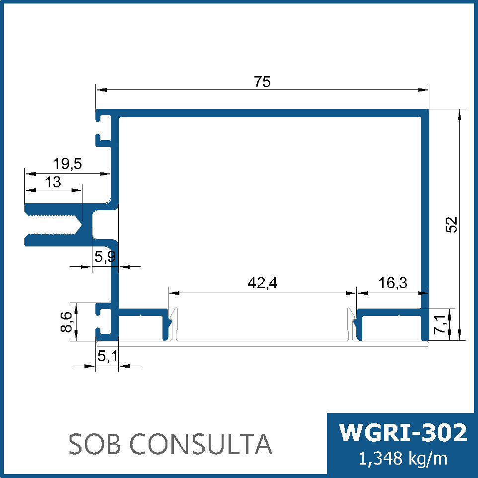 Travessa superior e inferior de 90,7mm, para fachadas de pequeno a médio porte.