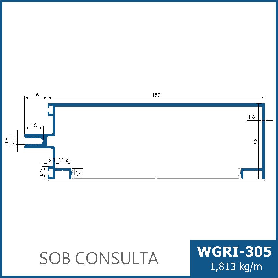 Travessa superior e inferior de 166mm, para fachadas de grande porte.