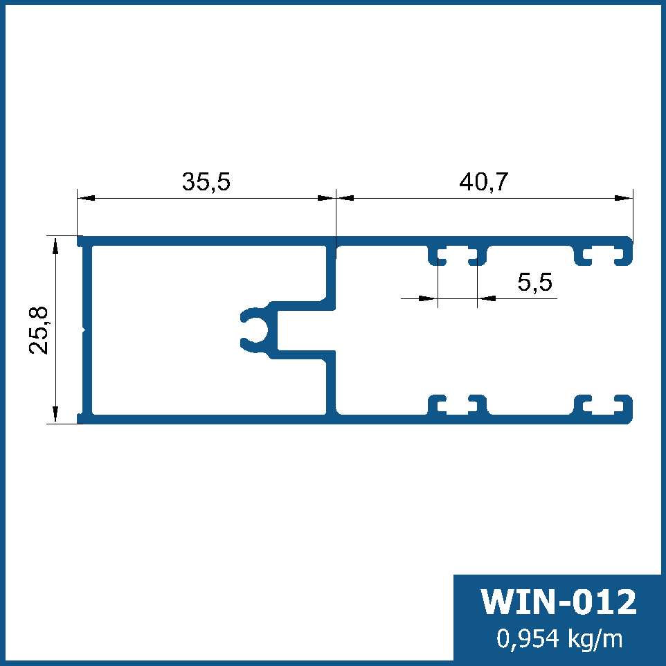 Montante guia da persiana (com vedação dobrada), indicado para portas e janelas de correr com persianas integradas de médio a grande porte.